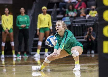Gloria Mutiri played two seasons at Kansas State, averaging 2.52 kills last year to go with 70 blocks. Now she will be Oregon’s junior right side.