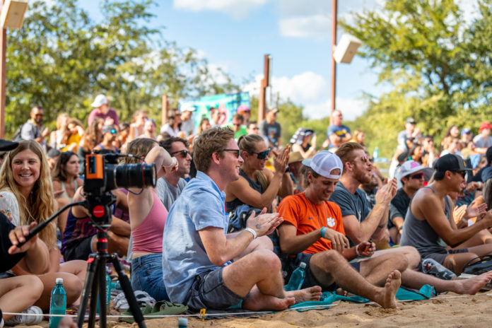 Featuring three pro teams and three local Texas teams, the event proved compelling enough to convince 800 or so fans from Texas and beyond to pay $30 a ticket (or $1,000 a table for the VIP experience) to attend. They came for the volleyball — to see April Ross or Casey Patterson or Taylor Crabb, or to cheer on the local Texas players — but they stayed for the atmosphere, the scene-setting commentary of the legendary Chris “Geeter†McGee, the skyball and joust contests, the free flowing drinks, shrimp tacos, and barbecue and that sense of pre-COVID normalcy so hard to come by these days.