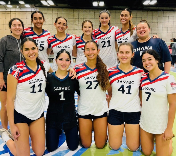 SASVBC G 18 Lesli battled in the AAU Transpacific finals, and finished second, losing to another Island team, 17-15 in Game 3 of the championship match.  18 Lesli is a team to watch nationally, with Gatorade POY Adrianna Arquette (University of Hawai’i) setting, as well as hitters Tia Kapihe (Santa Clara), Sydney CazimeroHaumea MarumotoKiana Cueto, and Larryn Alexis Joseph-Rodriguez. The defense is strong with Kody Wengler (UNLV), Reese Teves (LIU) and Alaina Valdez, and also boasts setter Ava Ahokovi, who contributes when Arquette is hitting.