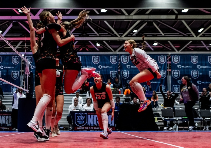 • The story of the Elite 17s final was told in a riveting third set. The teams exchanged blowout wins over the first two, with Chicago’s 1st Alliance capturing the first and Sting, from Milwaukee, of course, meting out its own payback in the second. The blowouts were particularly helpful to this writer, because it gave him a chance to spend extended time covering the Elite 15s final, which was being played concurrently.