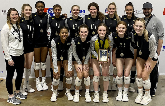 Coaching club volleyball since 2017, Jeff Motluck will be taking his first team to Nationals. The team went 8-0 (16-1 in sets) to win the event, and was led by setter Brayden Hipp, a Tulsa commit. Albany commit OH Cassidy Bloom, Ferris State commit RS Logyn Geren, Florida Tech commit MB Hope Demerest and MB Kendyl Bryson, OH Kelly Franklin, and libero Bella Velazquez all were instrumental to team success.