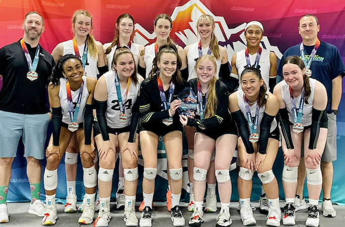 AZ Revolution checked in third to get the final bid. Carl DeFriez’ team lost that 19-17 marathon Game 3 to Club V — “One of the most intense three-set matches I’ve ever coached, DeFriez said — making every match thereafter a must win. Revolution came through, beating Coast, ID Crush and Colorado Juniors to qualify.