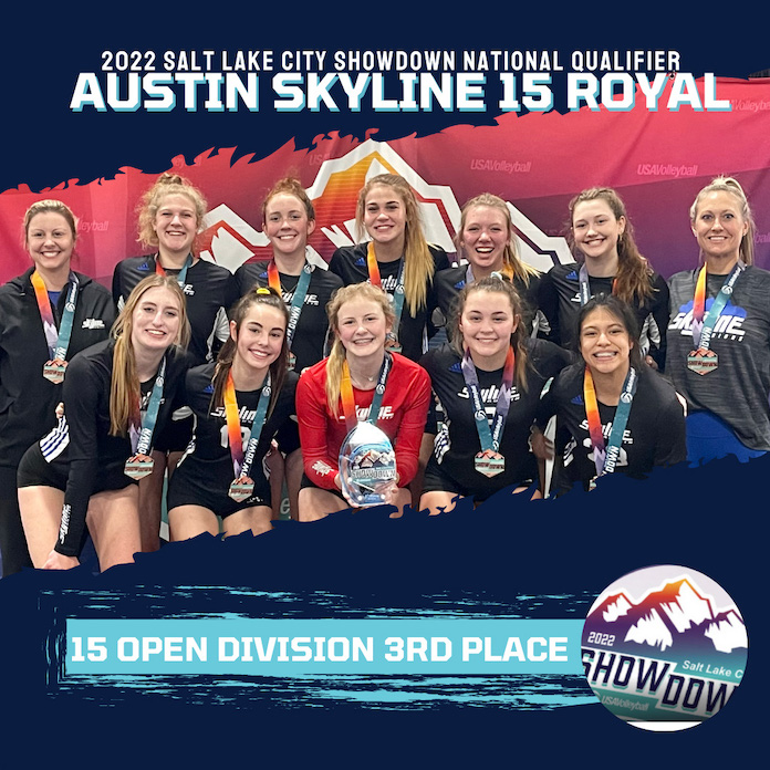 Austin Skyline had a bit of tougher path, but punched its ticket just the same. Jenny Luke’s team went 2-1 on the first day, losing to Excel 15 National Red, 15-13 in the third. The team lost to Long Beach on Day 2 and to Storm in the Gold Pool. To win a bid, it would need to win the third-place match again … Excel.