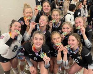 “I think we fought really hard all weekend and stayed unified as a team,†DeFriez said. “The team never gave up or got frustrated and battled through a lot of three-set matches to keep us on track. It was definitely not the typical path to qualification: we finished second in all three of our pools. We knew that despite losing a couple of close matches to some really good teams (Sunshine and Club V), there was still a really good path for us to qualify, so we never gave up and kept battling. I’m really proud of this team and look forward to continuing our journey this season.â€
