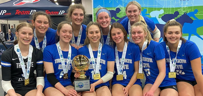 • Tri-State Elite dominant weekend continued in 16 Open play, as Tri-State Elite 16 Blue went 8-0 and dropped just one set in winning the 36-team division.
