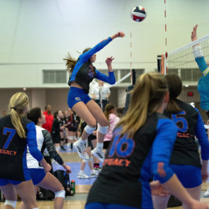 At Legacy in Michigan, the club has a current sophomore, 5-10 OH Cayla Cogan, who went from playing on a Regional-level team at 13s to the 14-2 team in eighth grade to now being a top tier recruit in the Class of 2024, touching almost 10-4 as a six-rotation go-to hitter on Legacy’s top 16s team.