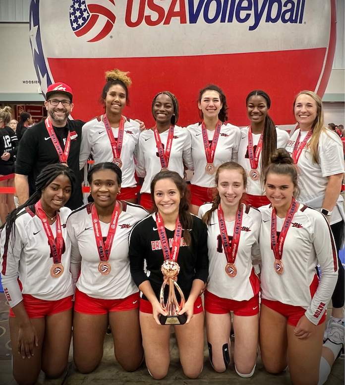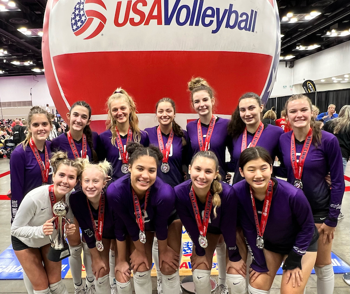 TAV coach Arthur Stanfield said that it was nice to medal with seven players from last year’s 14 Open runner-up team. Six-rotation players Audrey Jackson and Sydnee Peterson were both outstanding and setter Sarah Pfiffner did a great job of running the team.