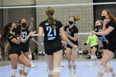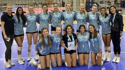 “Sunshine South Bay was very disappointed after their performance in Las Vegas,” club director Cari Klein noted. “They worked hard to improve their game on the two days off. The showed up in a big way with their serve and pass game. The passers, Carly Condon, Nicole Underwood, Caroline Altergott and Bella LeSage, were solid and passed over 2.4. The servers were serving up aces and putting pressure on the other team. Setter Ashley Cudiamat had 10 aces in the last day of pool play.