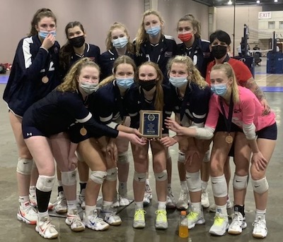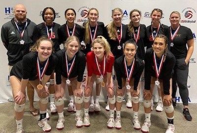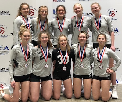 “This truly was a team effort,” the coach said. “We have two girls who are returners on our 18 Gold team, Daley McClellan and Alison Buchholz, and I would say their leadership and play this weekend were key to our success. Our middles, Tess Masingale and Brezlyn Langer, had a huge match against Mizuno Long Beach on our last day to get us into the finals. We had a great match-up there and they executed perfectly. We’ve also added a new setter, Adia Messenger, who always has a team-first mentality and has shown great leadership on the court as well. Having two highly competitive setters has improved the dynamic nature of our offense.