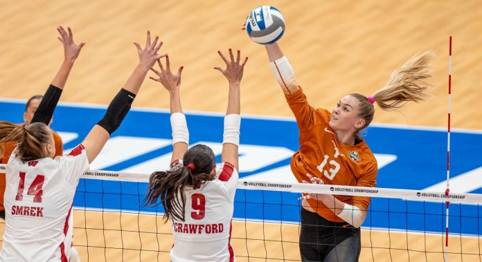 Against Wisconsin, with a front line featuring 6-foot-9 Anna Smrek and 6-7 Carter Booth, Texas used its speed, guile and athleticism to overcome that formidable wall. After the opening sets were split, Texas ran away in the third set, going on an 11-0 run to build a 15-3 advantage.