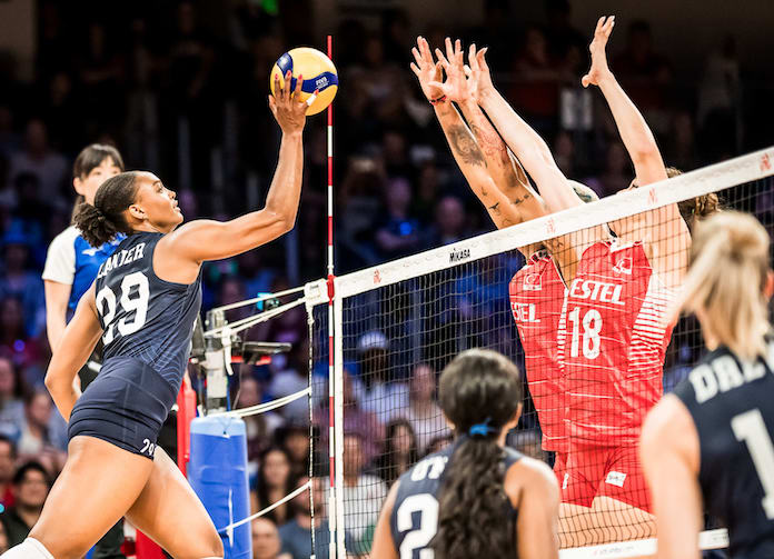 The USA beat Poland on June 28 in one of the closest, longest matches of the VNL campaign, 17-25, 25-15, 27-25, 28-30, 16-14. The stats were as close as the score, 73-72 USA in kills, 14-13 Poland in blocks, and each team had four aces.