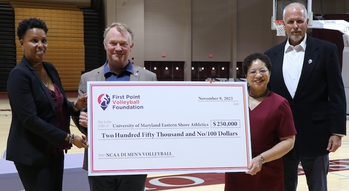 Maryland Eastern Shore received a $250,000 grant: $100,000 from USA Volleyball and $150,000 from First Point. Donors such as East Coast Volleyball also pitched in to make the UMES program happen.