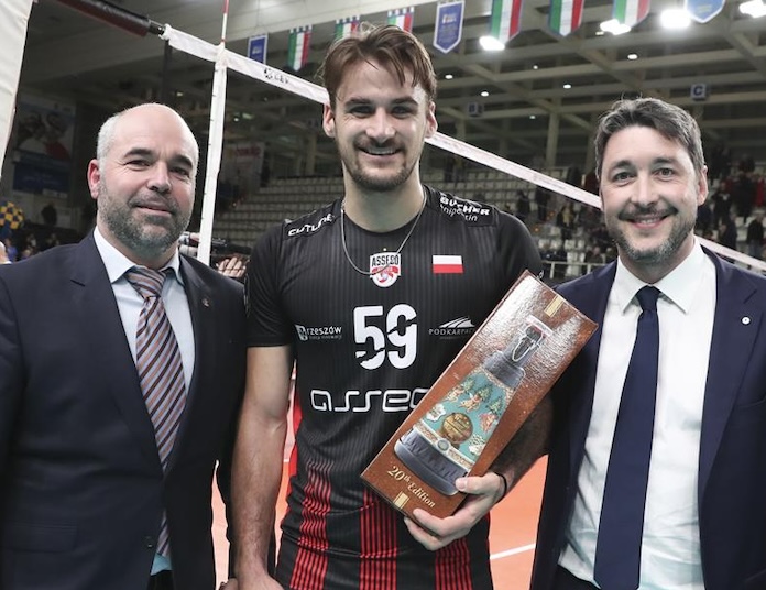 Asseco Resovia Rzeszów handed Itas Trentino its first defeat of the tournament, but that was not enough to qualify for the playoffs after its loss to Tours last week. TJ DeFalco started the last three sets of the five-set win, finishing with 12 kills and two aces.