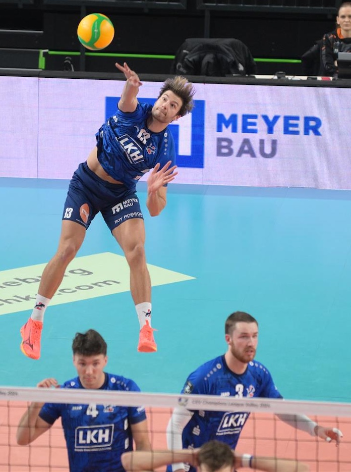 SVG Lüneburg stayed in second in Pool D but dropped its first match of the Champions League to Jastrzebski Węgiel, the leaders of the Polish PlusLiga. Matt Knigge scored on seven kills, an ace, and hit .875. Blake Leeson finished with six kills, hitting .333. Gage Worsley passed 42 percent positively and 17 percent perfectly.