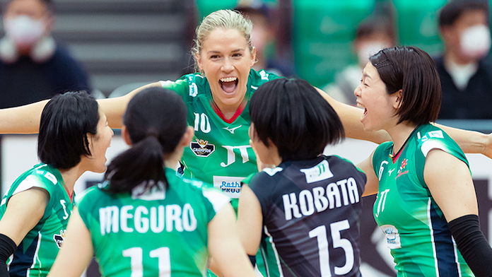 Hisamitsu Springs swept Toyota Autobody Queenseis in a close match 26-24, 25-22, 25-20. Foluke Akinradewo-Gunderson had eight kills (.471) and a block for Hisamitsu Springs. For Queenseis, Kelsey Robinson had 16 kills (.245), two blocks, and two aces.