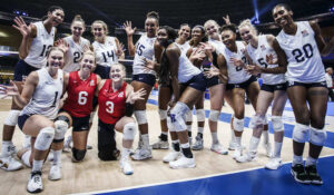The Americans got stronger as they went as they swept Thailand 25-21 — after being tied 16-16 — 25-18, 25-16. Jordan Thompson led with 14 kills while hitting .390 and had nine digs and a block. Avery Skinner had 13 kills, hitting .380, and eight digs and two blocks, and Kathryn Plummer had 10 kills and hit .450 to go with nine digs.