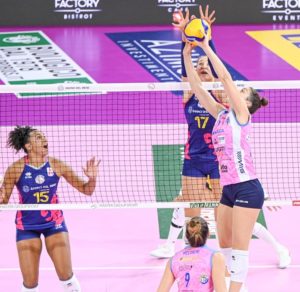 Chieri fired swept Firenze 25-22, 25-14, 25-12. Butler did not play for Chieri. Alhassan was Firenze’s second top scorer with seven kills and a block.