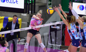 Conegliano stormed back from an early eight-point deficit in set one and swept rival Novara 27-25, 25-11, 25-23. Kelsey Cook had an errorless performance as she had 12 kills (.631) and passed 75% positive. Kathryn Plummer added five kills and two aces for Conegliano. McKenzie Adams had eight kills for Novara, while Jordyn Poulter started as setter again.