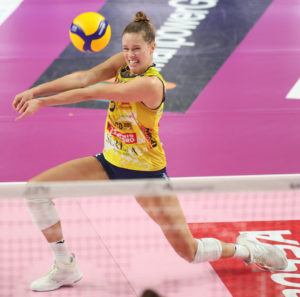 Chieri’s hot start to the season continued by dismantling Novara 25-16, 25-18, 25-23. Brionne Butler did not play for Chieri, while Novara’s McKenzie Adams was injured. Poulter had one ace as she set the first two sets for Novara.