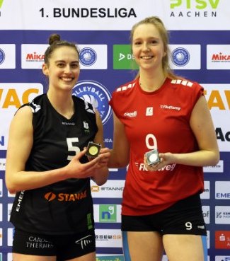 Ashley Evans was named MVP as she led Aachen past Vilsbiburg 25-16, 25-21, 21-25, 14-25, 15-6. Evans had four kills, three aces and a block as her team hit .311. Aachen (5-3) won its fourth match in a row to jump into sixth place in the standings.
