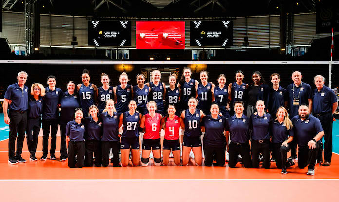 The USA women cruised to a 25-12, 25-12, 25-12 victory Saturday over Colombia to open the Road to Paris Volleyball Qualifier in Lodz, Poland.